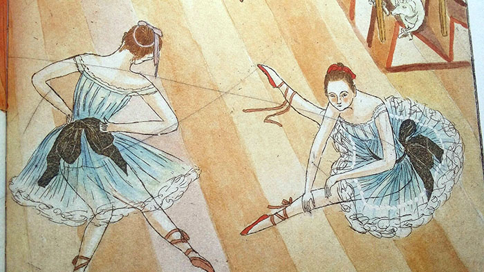 Persone che lavoravano e si divertivano, che passeggiavano e prendevano il tram, che si spostavano e conversavano, che si provavano cappelli o andavano a teatro. Parigi lo ispirava e voleva trovare un modo per catturarne la bellezza, lo spirito vitale, i riti, l’eleganza dei gesti. Come quelli delle ballerine all’Opera, intente a compiere i loro salti aggraziati o i loro inchini riconoscenti inondati di luce…