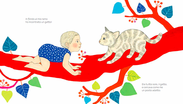 Il suo viaggio di scoperta sui rami lo porta a incontrare un micio, anch’esso in cerca di una sistemazione. E insieme proveranno a entrare nella tana di un gufo, nel nido di un uccello, nella casa del ghiro… Ma nessuno di quei posti si rivelerà adatto e accogliente.