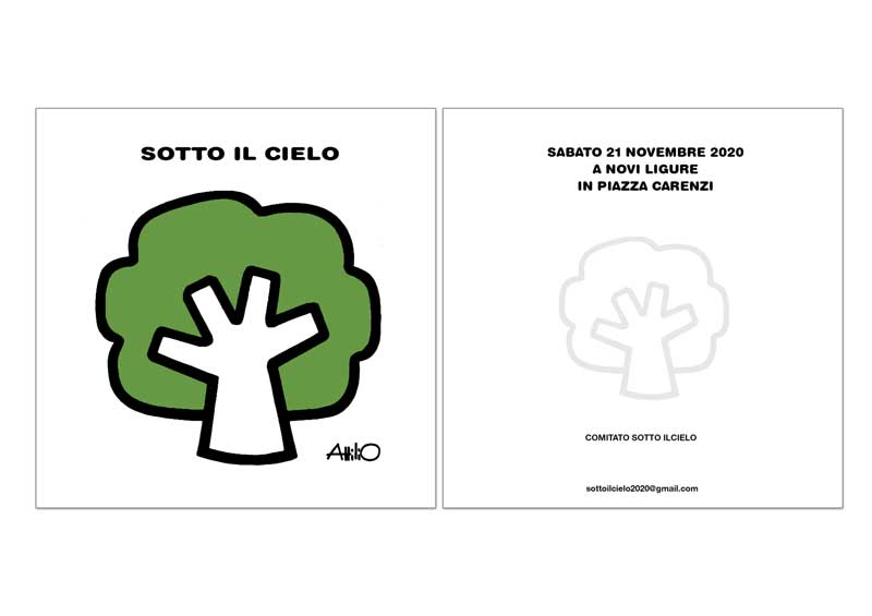 «“Sotto il cielo” è un comitato volto a promuovere incontri all’aria aperta, volevamo iniziare il 21 novembre 2020 nella giornata mondiale dell’infanzia e degli alberi. A causa dell’emergenza covid l’iniziativa ha preso il via solo a maggio, con lettura e merenda negli spazi esterni della libreria per bambini della nostra città, la Bottega del Sanconiglio. Al termine ci si sposta tutti nel più grande polmone verde della città, il Parco Castello. Dal prossimo incontro, lettura e merenda saranno direttamente sui prati del parco! I temi sono chiaramente natura e alberi. L’obiettivo è coinvolgere le famiglie e creare legami trasversali, avvicinarci all’ambiente proprio attraverso i libri. Vorremmo creare consuetudine negli incontri, in estate e in inverno, trovarci ogni 21 del mese e imparare ad incontrarci al parco. Non si possono celebrare gli alberi una volta all’anno. C’è bisogno di una “educazione outdoor” che riprenda il legame tanto caro ad Attilio, che per l’occasione ha creato un albero semplice dai tratti marcati, un’icona che cambia ad ogni incontro e si allinea allo scorrere delle stagioni. Alberi a volte difficili da riconoscere, forse perché siamo poco abituati a guardare la natura e abbiamo tutti bisogno di stare all’aria aperta, fare attività in compagnia e condividere o studiare i nomi degli alberi».