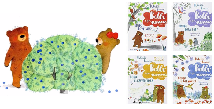 Bobbo e poi nanna, così s’intitola questa briosa collana scritta da Roberto Piumini e illustrata da Anna Curti, composta da brevi storie per bambini dai 2 anni e mezzo in su. Ogni libro (4 sono i volumi pubblicati finora) propone tre mini racconti a tema, incentrati sulle esperienze che si trova a fare l’orsetto insieme a Mamorsa (la mamma), Paporso (papà), all’amica Bea e agli altri abitanti del bosco che, di volta in volta, condividono scoperte, difficoltà e meraviglie. Il formato è quello classico di un quaderno, o di un romanzo.