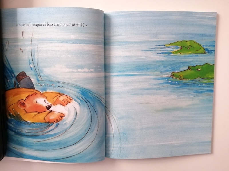 «E se nell’acqua ci fossero i coccodrilli?» – aggiunge il piccolo orsetto.
