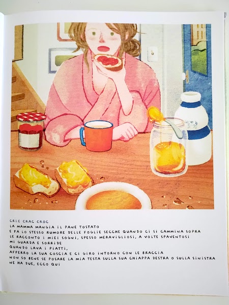 la mamma mangia il pane tostato e fa lo stesso rumore delle foglie secche quando ci si cammina sopra.