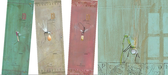A Gioele, il più grande, oltre alla libellula – davvero ben tratteggiata con un’attenzione particolare alla trasparenza delle ali – è piaciuto molto il formato scelto: alto e stretto, identico per tutte e tre le pubblicazioni: “sembra fatto apposta per essere portato con sé – ha detto – oppure per avere tutta la collezione”!