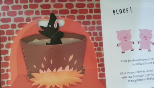 Mi piace molto questa collana pubblicata in Italia da Panini, particolarmente curata, con illustrazioni attente e numerosi particolari da toccare ed esplorare con le mani. Comprende 10 titoli e ognuno di essi è affidato a un autore francese. E che autori! I tre porcellini, per esempio, è firmato ancora una volta da Xavier Deneux, ed è ricco di materiali da scoprire, accarezzare, indagare con le dita. Ogni pagina cartonata riserva una sorpresa, ma la più simpatica è la presenza di un lupo “mobile” che si può staccare dalla pagina e infilare dentro il pentolone (mia figlia se lo porta a spasso per casa).