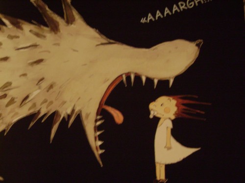 Nella lettura ho calcato la mano durante la scena dell’incontro con il lupo. Ho cercato di renderla forte e spaventosa al punto giusto… I miei piccoli ascoltatori osservavano me e le pagine silenziosi e assorti.