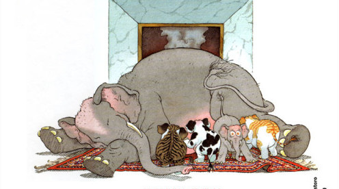 Il terzo titolo, come vi dicevo, racconta la cotta del pachiderma per una gattina e la loro romantica liaison. Direi che si può cominciare a proporli a bambini di 4-5 anni.