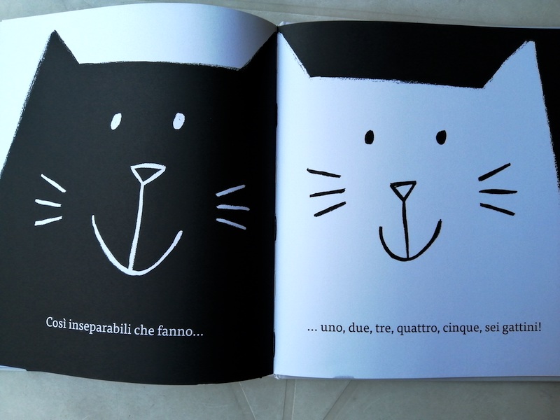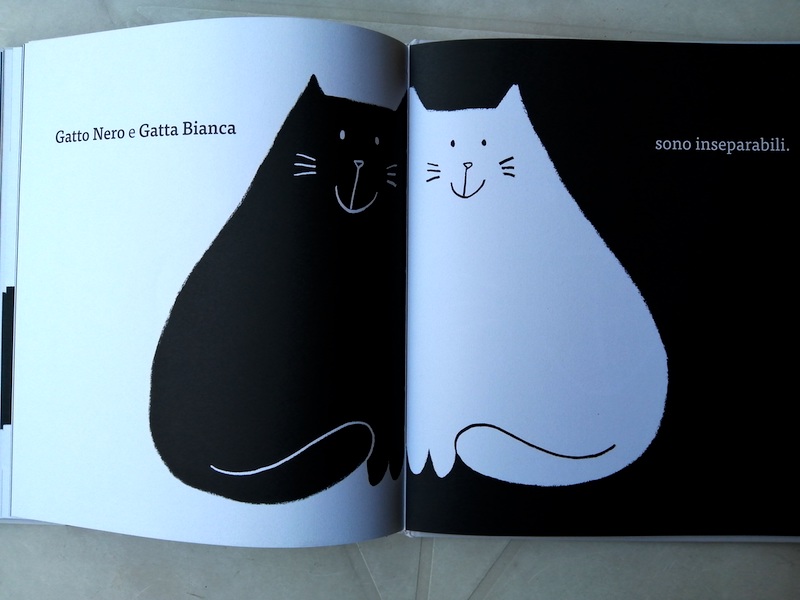 Ormai diventato un classico della casa editrice Minibombo, “Gatto nero, Gatta bianca”, scritto e illustrato dalla super creativa Silvia Borando, è un tenero e divertente gioco di rispecchiamenti e ribaltamenti visivi tutto basato sulla contrapposizione tra il bianco e il nero.