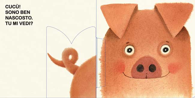 I libri del Cucù in Italia sono rari. Ce ne sono svariati che usano le alette per creare un senso di suspense e un effetto sorpresa (della serie: trova l’oggetto nascosto, dove si è ficcato il personaggio, cosa si cela dietro la tenda ecc.) ma pochi si limitano a riprodurre con esiti fortunati il semplice e amato gioco del volto coperto dalle mani. Ecco perché oggi sono contenta di segnalarvi questa novità editoriale rivolta ai baby lettori: