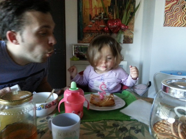 Oggi è il compleanno della nostra bambina! Compie 2 anni e se li porta alla grande 🙂 Adoro quest’età in cui si fa ogni giorno più spigliata, decisa, chiacchierona e giocherellona. Adoro la sua dolcezza, la capacità di ascoltare, capire, stare attenta. Adoro persino le sue finte lacrime, quando si butta a terra disperata per un “no” e si rialza come se nulla fosse se al “no” faccio seguire un allegro: “Andiamo a fare la torre con le scatole sul tappetone?”.
