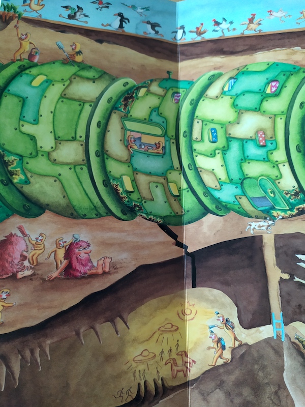 Se il primo libro presentato è una narrazione per piccoli e il secondo un divertente saggio illustrato, questo ha altre caratteristiche particolari e sorprendenti che lo avvicinano al mondo tecnologico, alla fantascienza: ci mette di fronte a un sistema abitativo e di trasporto a forma d’immenso sonda perforatrice.