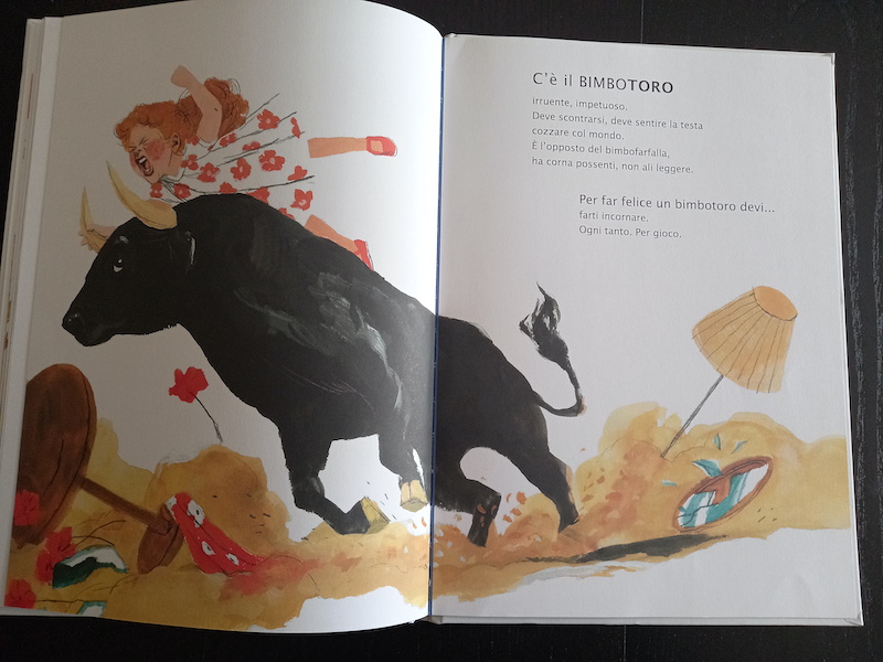 L’autore si rivolge ai lettori in maniera dolcissima, molto empatica. Non giudica, sembra quasi dare per scontato il fatto che nel mondo esistano bambini di ogni tipo e che ognuno di essi è speciale proprio perché è fatto così, unico nel suo genere. Il testo non casca mai nello stereotipo perché è ben chiaro che l’intento è quello di voler dare una connotazione positiva al carattere di ognuno, per imparare a trattare ogni bimbo per quello che è, toccando le giuste corde. E ricordiamoci poi che un bambino, come anche un adulto, spesso cambia il suo modo di porsi con gli altri e di stare al mondo in base al contesto in cui si trova. È quindi assolutamente possibile che il suo modo di sentirsi cambi, un giorno toro e un giorno peluche, per esempio.