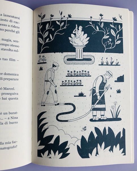 Le illustrazioni di Silvia Mauri sono esclusivamente in bianco e nero, perfettamente in grado di ricordare al lettore i fotogrammi delle vecchie pellicole cinematografiche; con linee essenziali e schematiche, sono immagini piccole quando poste a sigillo dell’inizio dei singoli capitoli, ma poi si ingrandiscono anche a tutta pagina, distribuite “casualmente” qui e là, a rappresentare eventi e particolari salienti.
