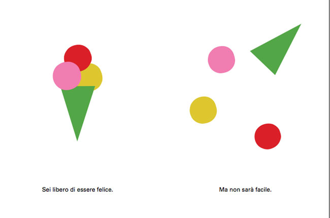 Un gelato per dire Sei libero di essere felice e una foglia ingiallita per dire Sei libero di essere infelice. Tante foglie ingiallite per dire che di solito non è difficile essere infelici.