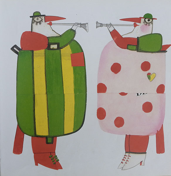 Sono tavole vibranti, astratte, surreali, fantastiche, pittoriche. Potrei continuare a lungo con gli aggettivi perché quando sono entusiasta non riesco a contenermi.  E allora eccone qualcun altro: sono illustrazioni poetiche, pazze, festose, “strane” e “illogiche” come le disegnerebbe un bambino di 6 anni. Sono magiche.