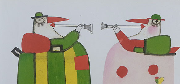 Sono tavole vibranti, astratte, surreali, fantastiche, pittoriche. Potrei continuare a lungo con gli aggettivi perché quando sono entusiasta non riesco a contenermi. E allora eccone qualcun altro: sono illustrazioni poetiche, pazze, festose, “strane” e “illogiche” come le disegnerebbe un bambino di 6 anni. Sono magiche.