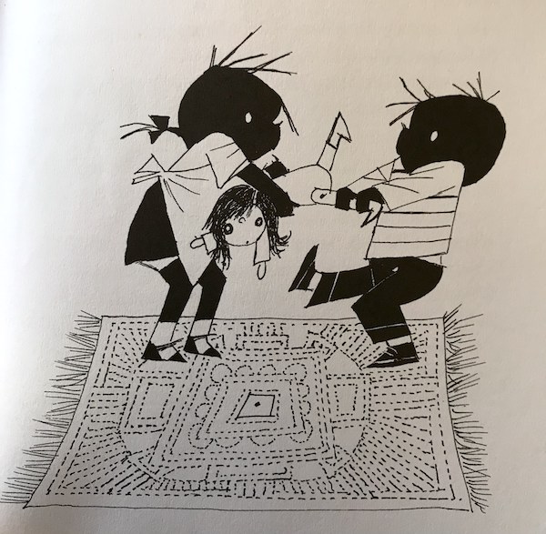 E Jip, annoiato dalla proposta non patteggiabile dell’amichetta, come già altre volte abbiamo visto accadere nel primo libro, prima brontola e poi trova il suo originale modo di rendere il gioco più divertente…
