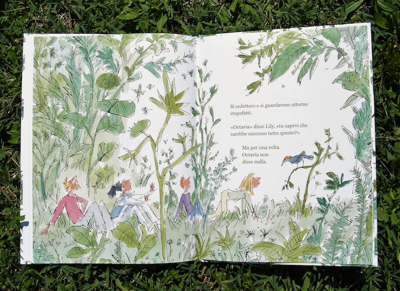 Il secondo parallelo è con un altro albo di Quentin Blake, La nave d’erba, dove la natura, rigogliosa e potente, la fa da padrona di fronte agli occhi incantati e stupefatti dei due protagonisti, che grazie a lei viaggiano con l’immaginazione, trasformandola nel teatro di mille giochi e avventure.