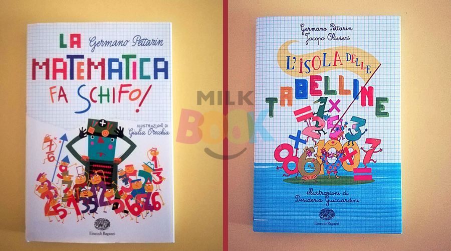 Accostarsi alla matematica attraverso la lettura di una storia di fantasia? Se me lo avessero detto da bambina, magari le cose sarebbero andate diversamente, vista la mia ostinata avversità ai numeri. “La matematica fa schifo” (di Germano Pettarin, illustrazioni di Giulia Orecchia, Edizioni Einaudi Ragazzi) e “L’isola delle tabelline” (di Germano Pettarin e Jacopo Olivieri, illustrazioni di Desideria Guicciardini, Edizioni Einaudi Ragazzi) sono due piccoli romanzi (età di lettura 8+) che possono anche essere letti uno di seguito all’altro, visto che l’ambientazione, il contesto e i personaggi si susseguono con ritmo, divertimento e curiosità.