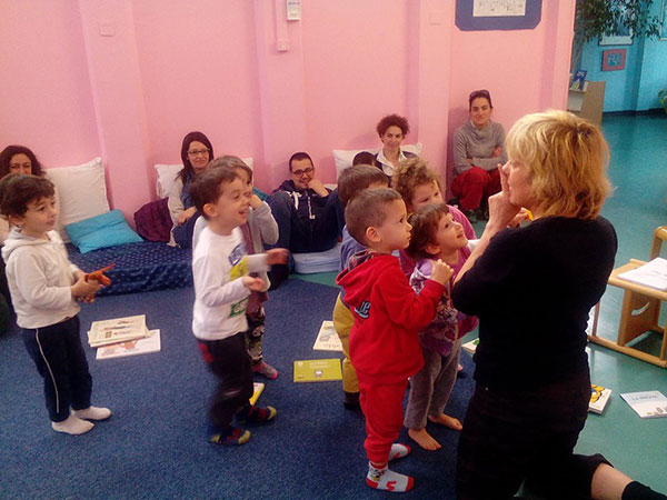 Sono molto (moltissimo) critica riguardo al modo con il quale si fa teatro e letture animate in Italia; spesso si è immersi in una confusione scandalosa (stanze di passaggio, coesistenza di altri eventi), spesso viene considerato un parcheggio (solo in Italia io ho visto mollare i bambini dai genitori che “si mettono dietro”!!!).