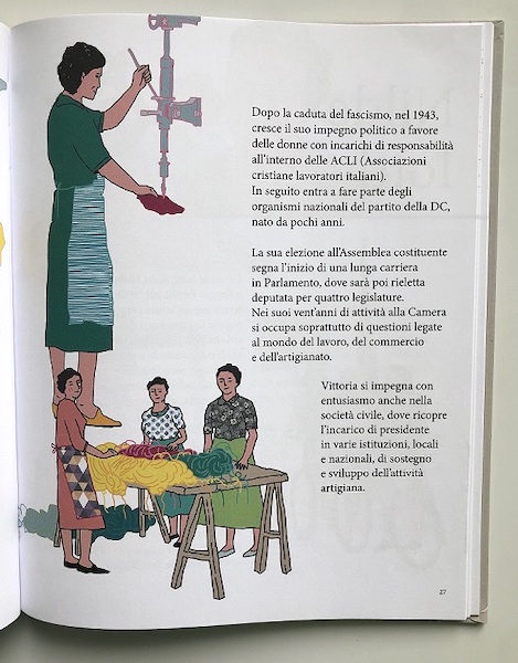 Dal punto di vista storico alcuni nomi sono sicuramente già noti ai lettori adulti, come Nilde Iotti (prima donna a diventare Presidente della Camera, nonché promotrice della legge sul divorzio) e Angelina Merlin (promulgatrice della legge che porta il suo nome, quella contro lo sfruttamento della prostituzione), ma sfogliando le pagine si scopre che già all’epoca numerose erano le figure femminili fortemente impegnate sul territorio, con un profondo legame con la propria Patria, nonché desiderose di contribuire per cambiarla in meglio.