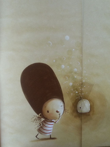 Una storia evocativa, delicata, dall’atmosfera avvolgente. Le illustrazioni dai toni neutri, ambrati, sembrano fatte della stessa sostanza intima e sfuggente di cui sono fatti i sogni. Le pagine richiamano la carta da pacchi, altro dettaglio che intriga.