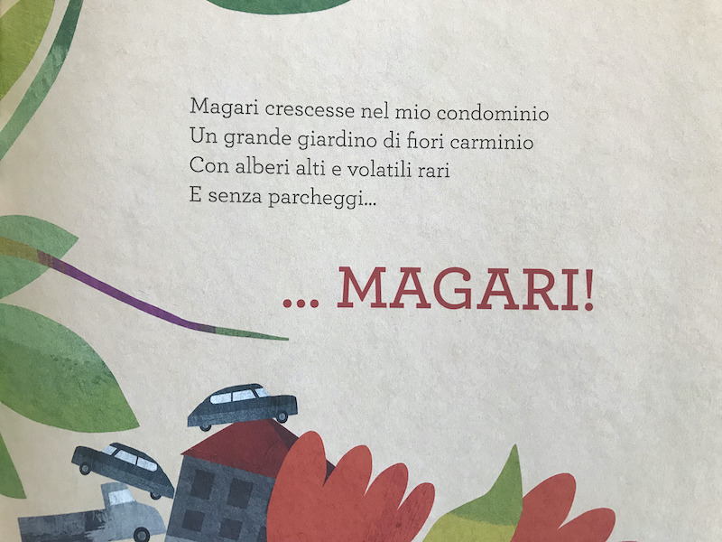 Come Tognolini ha avuto modo di spiegare a più riprese, questa parola è stata scelta per la sua capacità di condensare in un solo e popolare vocabolo tutta la forza di un auspicio, di una speranza di felicità. È pur vero che spesso, nell’uso colloquiale, assume una coloritura negativa, di sfiducia; “magari” lo diciamo sospirando o con una smorfia sul viso, quando riteniamo che qualcosa di ambìto sia di fatto altamente improbabile. Ma il poeta ci invita a ricordare e sostenere il significato che gli è primo e proprio, direttamente connesso al suo etimo greco: “makariòs”, felice, “felice io sarei se…” e che afferisce ad un atteggiamento positivo, vòlto al sì o alla proposta, un atteggiamento che è bello sentire così vivo nella nostra lingua. Dovendo dunque scrivere dei versi per un Festival dedicato ai desideri, magari è parsa essere la parola ideale da cui partire, capace com’è di dispiegare al contempo l’ala del suono, anche in vista della destinazione per cui era pensata, cioè l’essere pronunciata ad alta voce da tante persone tutte insieme durante le giornate di Tuttestorie, e l’ala del senso, tanto care a Tognolini; è così che la poesia può prendere il volo ed arrivare lontano.