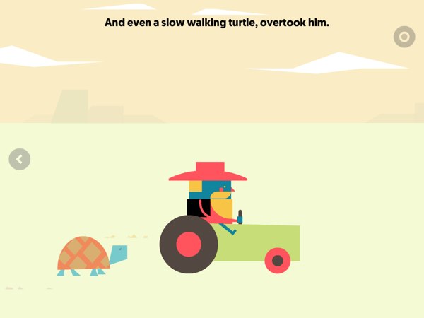 Suggestiva la grafica, essenziale, luminosa, con i personaggi geometrici e moderni, lo sfondo arioso e chiaro, che fa realmente pensare di percorrere quegli sconfinati spazi. Misurati e funzionali gli interventi sonori, che si attivano al tocco dello schermo. Giusta anche la “dose” di interattività presente: quel poco che serve per arricchire e per non disturbare l’evolversi della narrazione.