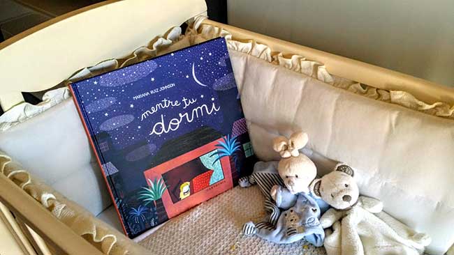 Difficile staccare gli occhi dalle sbalorditive illustrazioni di questa storia della buonanotte senza parole: ricche, preziose, ammalianti, una galleria di suggestivi dipinti notturni che sfilano su doppia pagina. La cifra stilistica della giovane autrice di libri per bambini e illustratrice argentina Mariana Ruiz Johnson è inconfondibile e indimenticabile. Basta aver visto uno dei suoi libri per riconoscere a colpo sicuro il suo universo gioioso, fiabesco, animato da colori intensi, contrasti accentuati, figure dai lineamenti forti, con gli occhi grandi in primo piano.