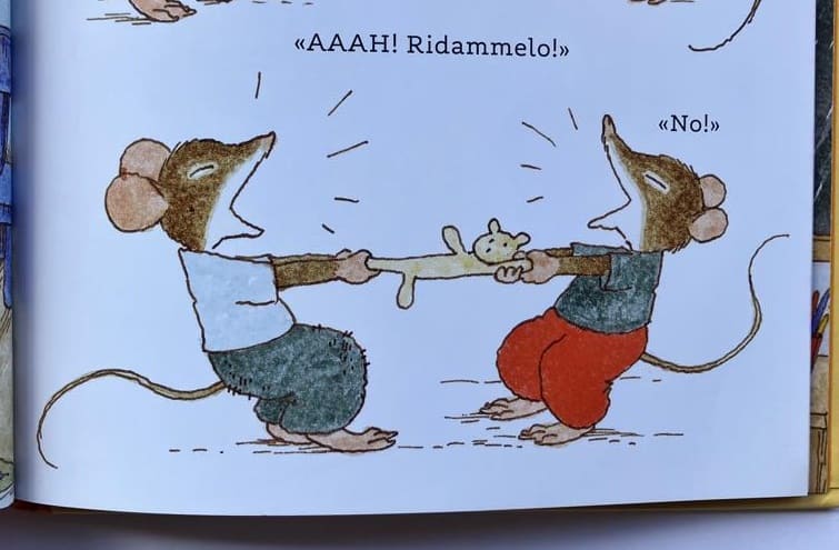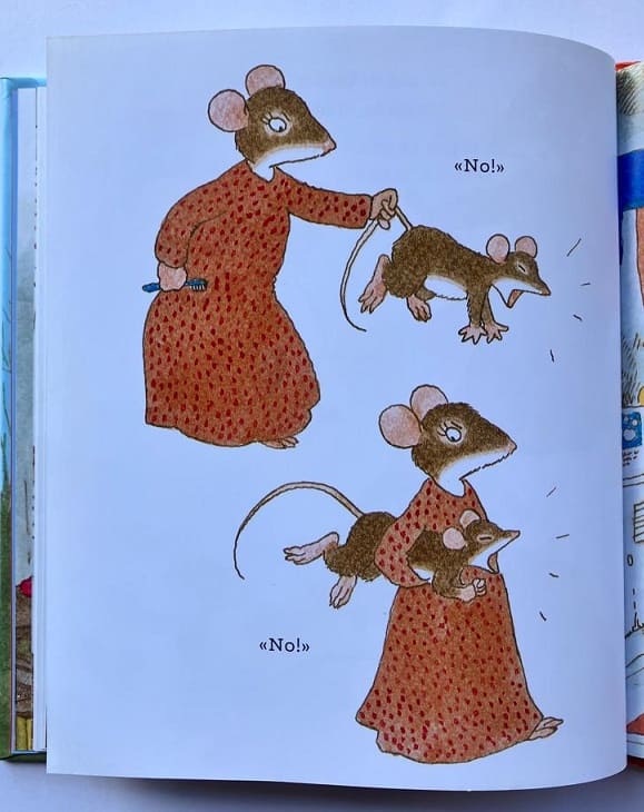 Quando l’amichetto Lino arriva, i due topolini si mettono a giocare tra loro, pur con qualche battibecco che tocca di nuovo alla mamma sedare a dovere. La giornata trascorre comunque serena e questa volta Lino si lava i denti da solo e si infila a letto in un batter d’occhio, senza protestare.