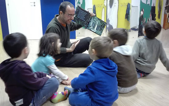 All’inizio ho voluto provare. Mi sembrava una cosa interessante poter unire la musica, così come viene vissuta negli incontri al nido, alla lettura. Sono stato invogliato a sperimentare la cosa da alcune educatrici di nido che vedevo spesso leggere con i bambini al mio arrivo in classe. Ha funzionato moltissimo! Mi sono appassionato, mi sono informato (anche leggendo MilkBook, evviva MilkBook!), ho trascorso ore in libreria sfogliando e scegliendo libri, portato i libri ai bambini, cantato e “fatto musica” inserendo appunto il “fare” musicale nei momenti illustrati sulle pagine e ho scoperto un nuovo mondo. Il mondo della letteratura per l’infanzia. Ho incominciato poi a portare i libri anche alla scuola dell’infanzia con sempre più interesse sia mio sia delle maestre!