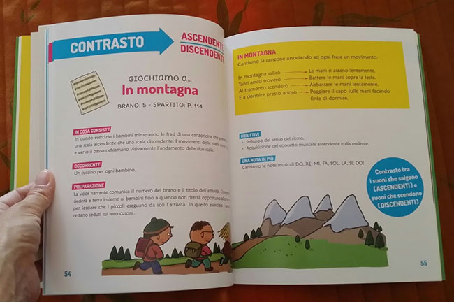 Marcella ha composto i pezzi sulla base dei giochi motori elaborati da Fulvia che, nel frattempo, li ha testati a scuola con i suoi bambini, in un contesto di gruppo che li protegge e incoraggia. Così è nato “Musichiamo“, un valido supporto al lavoro quotidiano delle educatrici del nido e delle maestre della scuola dell’infanzia.