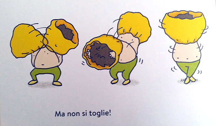 Un punto di vista particolare scelto dall’autore e illustratore nipponico Shinsuke Yoshitake, una prospettiva divertita e paradossale che serve a rafforzare il senso del ridicolo che alberga in ogni pagina di questo surreale albo.