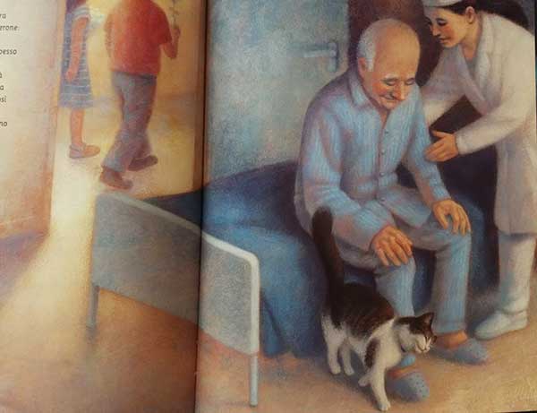 Quando “Mewt” è pronta, Oscar sa quello che deve fare: rassicurare il malato, scaldarlo con la sua pelliccia morbida, fargli tante fusa per tranquillizzarlo e scacciar via la paura che affiora. Questo è il suo compito. Questa la sua missione. E la porta avanti ogni giorno al meglio che può.