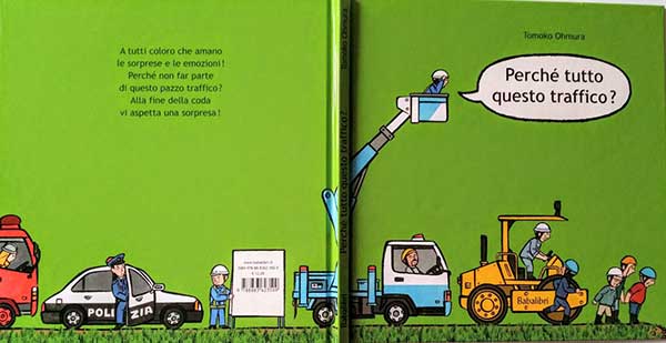 Scritto e illustrato dalla giapponese Tomoko Ohmmura, l’albo ricalca il simpatico meccanismo già usato nel precedente “Tutti in coda!“, uscito nel 2011. Se allora ci trovavamo di fronte a un’infinita coda di animali, uno dietro all’altro, dal più piccolo al più grande, diretti non si sa dove (con finale a sorpresa), questa volta a mettersi in riga sono cinquanta veicoli (con relativi conducenti), bloccati nel traffico.