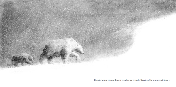 Le illustrazioni in bianco e nero dal tratto preciso ed estremamente realistico sono la colonna portante di questo evocativo albo illustrato che racconta il rapporto intimo e strettissimo tra una mamma orsa e la sua piccola, impegnate in un viaggio di scoperta e crescita lungo il susseguirsi delle stagioni.