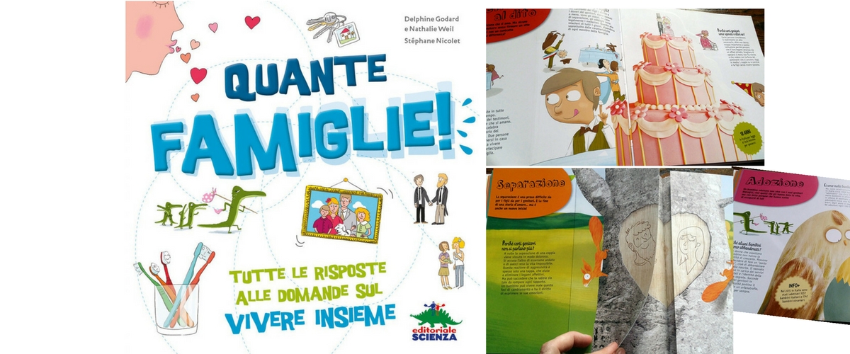 Questa nuova pubblicazione di Editoriale Scienza dal titolo Quante famiglie! (testi di Delphine Godard e Nathalie Weil, illustrazioni di Stéphane Nicolet, traduzione di Francesca Gregoratti) intende prendere una posizione chiara e decisa sull’argomento. Intende rispondere alle domande dei bambini in maniera sintetica e oggettiva, fugando dubbi, paure, incomprensioni.