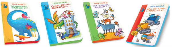 Particolarmente apprezzabile è anche la scelta del formato, di medie dimensioni, compatto e maneggevole. Le pagine sono in cartoncino spesso con gli angoli stondati, piacevoli al tatto, facili da sfogliare. La copertina è attraversata da un colore dominante che contraddistingue ogni titolo della collana: rosso per i mezzi di trasporto, giallo per i dinosauri, verde per gli animali e azzurro per le storie di maghi, draghi e principesse.