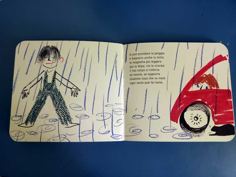 Gli adulti alle prese con questo bel testo di Giusi Quarenghi potranno sentirsi tirati in causa. L’autrice sembra volerci dire di non negare in nome delle preoccupazioni adulte, di non disapprovare. L’importante è stare al fianco dei bambini, seguirli senza intervenire, infondendogli fiducia.