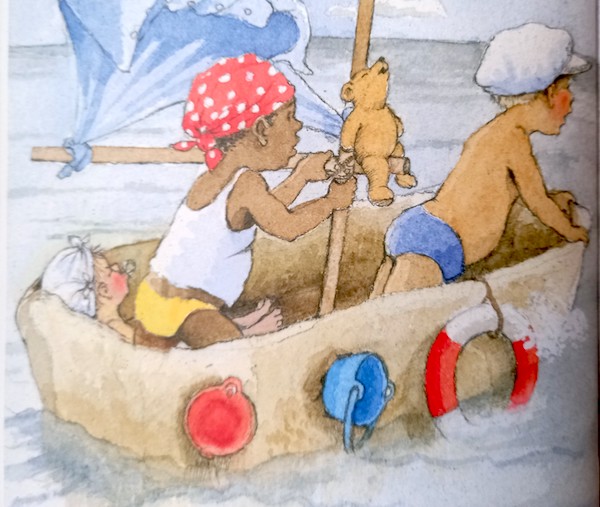 Trovo che questo sia un albo illustrato in rima assolutamente delizioso, che racconta come una giornata in famiglia in spiaggia si possa trasformare in un’emozionante avventura piratesca, una storia capace di stimolare l’immaginario dei bambini, che può essere davvero grande e straordinario.