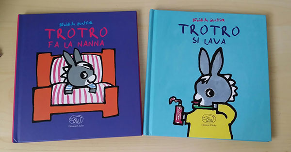 Pubblicato con fortuna in Francia dall’editore Gallimard Jeunesse, l’asinello Trotro è già stato proposto una decina di anni fa in Italia in versione stampata dal marchio Red Edizioni. Da tempo non era più disponibile qui da noi. Ed eccolo rispuntare nel 2015 grazie alla casa fiorentina Edizioni Clichy (leggi la nostra intervista all’editore).