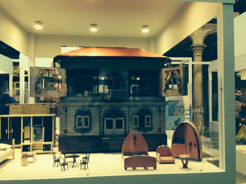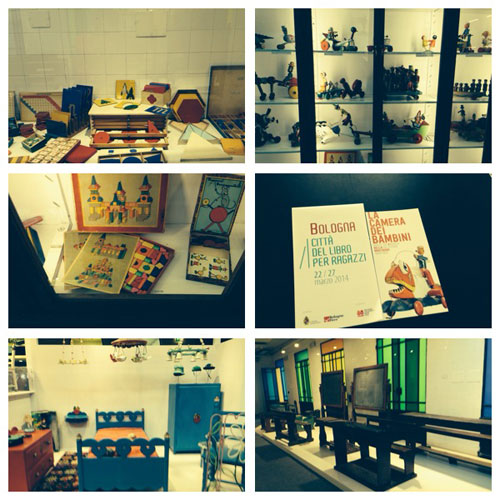 Siamo partiti da Ravenna alle 9.15 e, intorno alle 11, eravamo già a Bologna felici ed emozionati. Il nostro programma ha incluso la visita alla mostra La camera dei bambini – Giocattoli e Arredi della collezione Marzadori 1900-1950 -, allestita fuori dai locali della fiera, nel centro della città. Non so chi fosse più meravigliato tra mia figlia quattrenne e me… Ci siamo trovate di fronte una casa delle bambole, completa di accessori, quasi a grandezza naturale! E poi giochi da esterno tutti in legno e cavalli a dondolo: quanta voglia di provarli, difficile tenere a freno la piccola! E ancora, tante confezioni di costruzioni e puzzle, pallottolieri e primi giochi di apprendimento sul riconoscimento delle forme geometriche tutti rigorosamente in legno, sedie e sgabelli, tavolini, lavagne di ardesia di varie dimensioni a dimostrazione che i giochi dei bambini non vanno mai fuori moda: costruire, impilare, vestire, dondolarsi sono piaceri intramontabili.