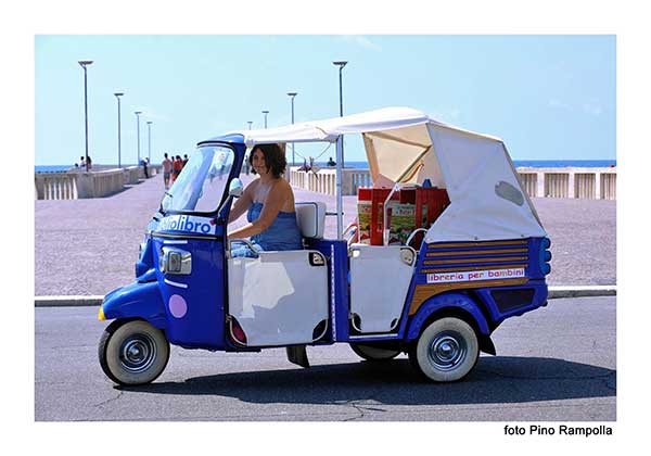 Avete mai sentito parlare di Bibliolibrò? Se siete di Roma o provincia, è probabile che l’abbiate anche incontrata per strada o in occasione di qualche fiera, manifestazione artistica o mercatino. Bibliolibrò è una piccola libreria itinerante allestita su un’apecar, che si propone di promuovere la lettura per bambini e di far conoscere il lavoro di piccoli editori che faticano ad arrivare sui grandi scaffali.