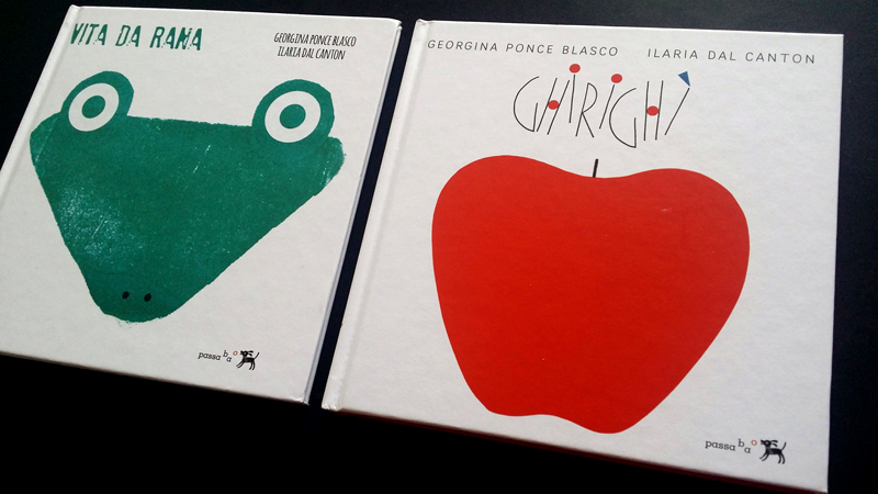 Questi sono i due libri finora pubblicati da passabao: il primo, VITA DA RANA, ha segnato il suo debutto circa un anno or sono, il secondo, GHIRIGHÌ, è stato dato alle stampe pochi mesi fa. A scriverli è stata Georgina Ponce Blasco, a illustrarli Ilaria Dal Canton.